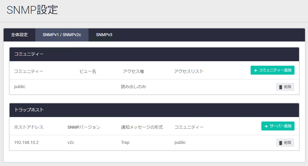 | SNMPコミュニティーの一覧が表示されます | |