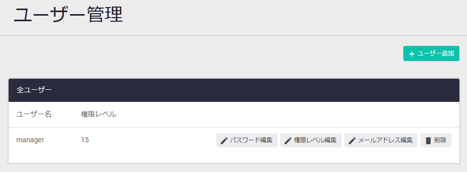 | ユーザー追加ボタン | 新規ユーザー追加ダイアログが開きます |