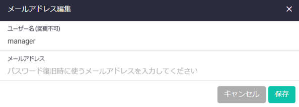 | パスワード編集ボタン | ユーザーのパスワードを変更するためのパスワード編集ダイアログが開きます |