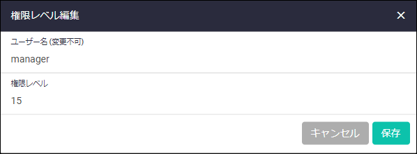 | 権限レベル編集ボタン | ユーザーの権限レベルを変更するための権限レベル編集ダイアログが開きます |