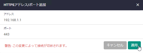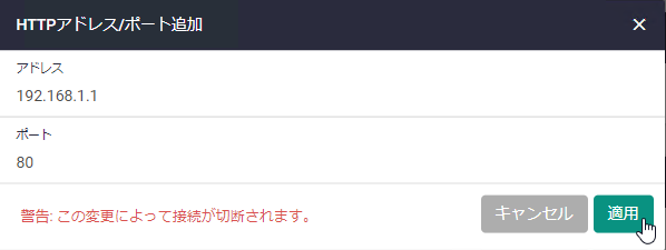 Note待ち受けアドレス/ポートの追加や削除を行うとWeb GUIの接続がいったん切断されます。