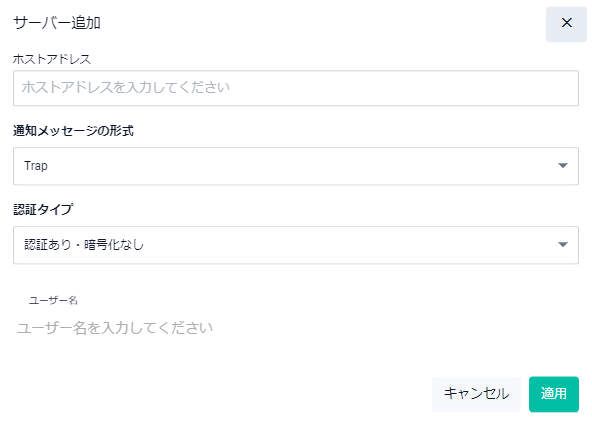| ユーザー名 | SNMPユーザー名を入力または選択してください |
