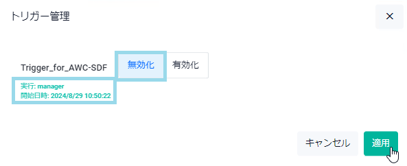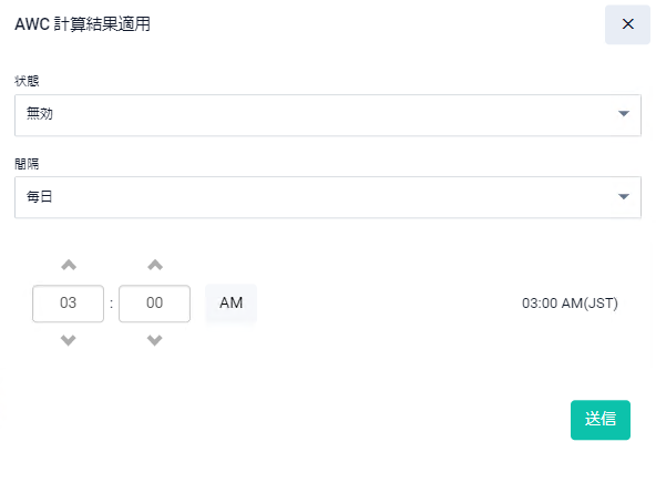 Note本設定はAWCプラグイン側から行われるため、Vista Manager mini上からは操作しないでください。なお、AWCプラグインから操作できないといったトラブルシューティング時など、一時的に動作の停止が必要な場合は、ご使用に際して弊社技術担当にご相談ください。