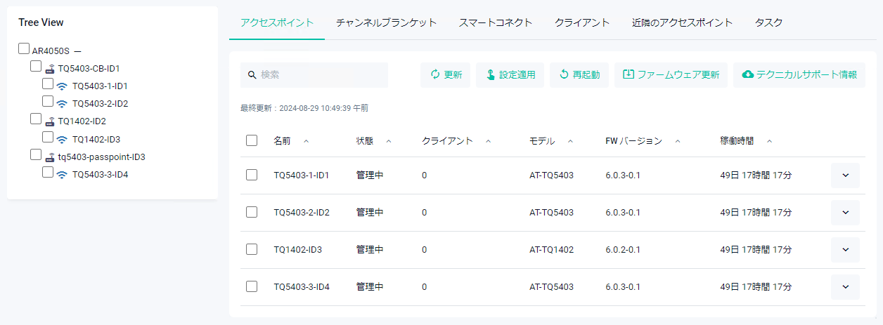 Noteアクセスポイントのファームウェア更新は1台ずつ行ってください。状態が更新中になるまで次のアクセスポイントのファームウェア更新は行わないでください。