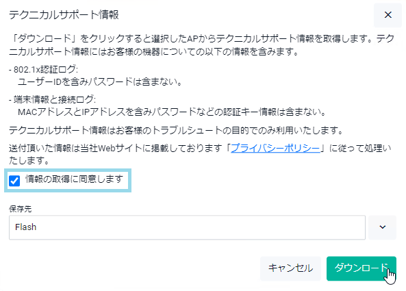 Note外部メディアに保存されたデータの確認方法は「無線LANコントローラー(AWC対応)」/「無線クライアント・隣接無線APログ」を参照してください。