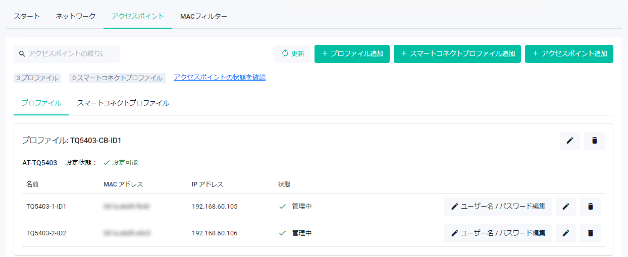 - 同一APプロファイルを複数のAPに設定