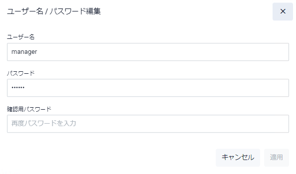 | ユーザー名 | 変更後のユーザー名を入力します。 1~12文字で設定。使用可能な文字は半角英数字のみ |