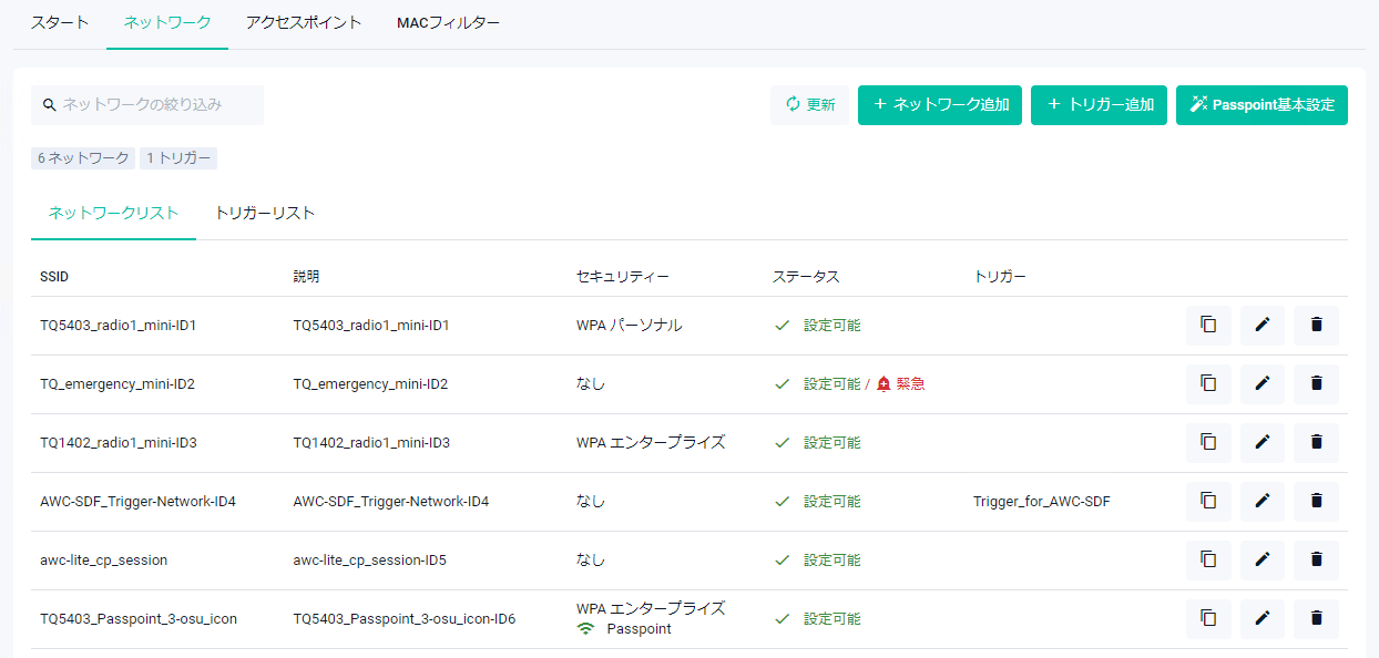 Note緊急モード機能と無線トリガー機能を両方有効にしたい場合は、一方の機能を有効にした後、対象APが管理下に入ったことを確認してから、もう一方の機能を有効にしてください。