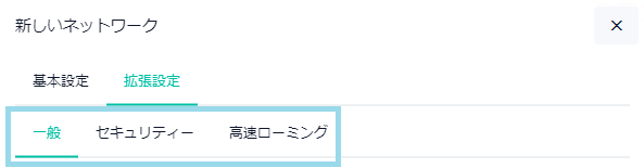Note高速ローミングタブは「新しいネットワーク - 基本設定」の「セキュリティー」で「WPAパーソナル」か「WPAエンタープライズ」を選択したときだけ表示されます。