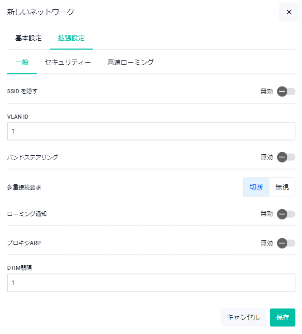| リアソシエーション期限 | ※本設定はサポート対象外となります。そのため、初期値の「1000」から変更しないでください |