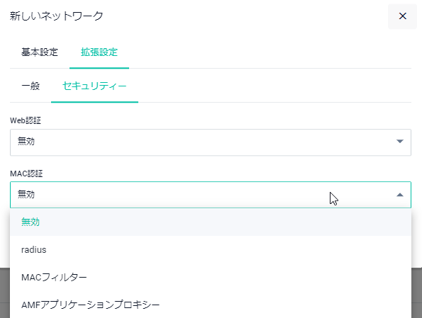 | MAC認証 | MAC認証の有効/無効を設定します |