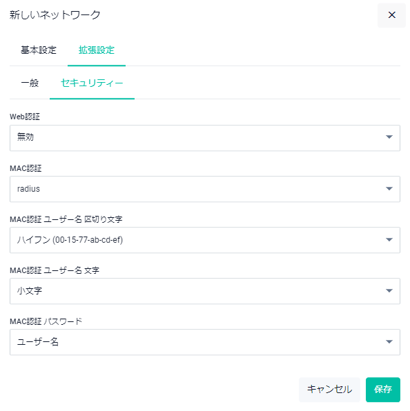 | MAC認証 ユーザー名 文字 | RADIUS属性のユーザー名の文字タイプ(大文字/小文字)を選択します |