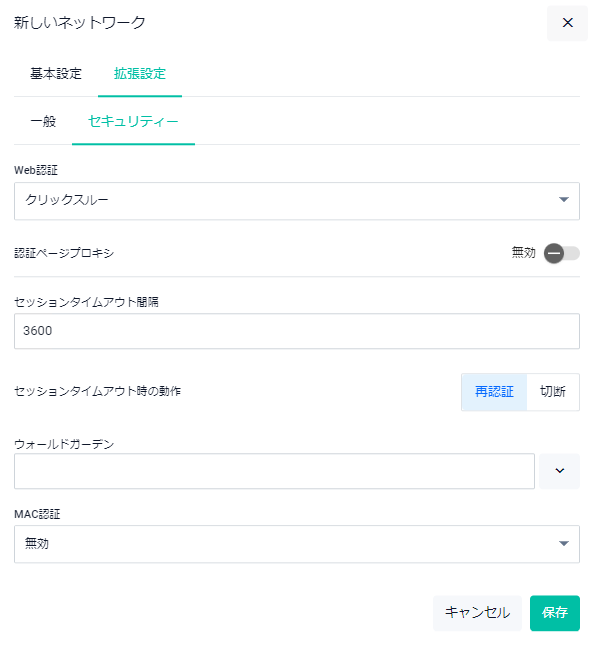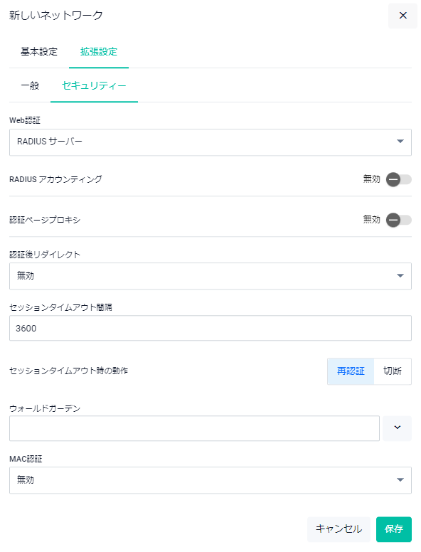 | セッションタイムアウト間隔 | セッション有効期間(再認証間隔)を指定します |