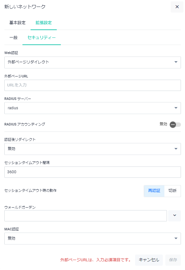 | 外部ページURL | 外部のキャプティブポータル認証ページのURLを指定します |