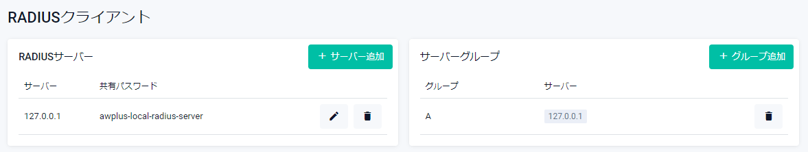 | 無効・有効スライドボタン | RADIUSサーバー機能の無効・有効を切り替えます |