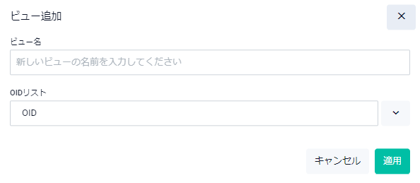 | OIDリスト | ビューを構成するOIDエントリーの一覧が表示されます。OIDエントリーを追加するには、右側の下向き矢印をクリックして「+ OIDを追加」をクリックし、ベースとなるOIDとエントリーの種類(含める=アクセスを許可、含めない=アクセスを拒否)を指定してください |