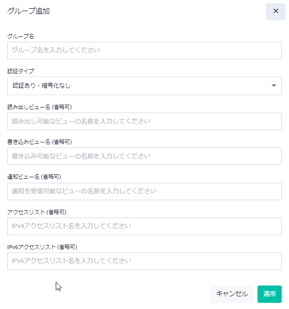 | グループ | ユーザーが所属するSNMPグループ名を入力または選択してください |