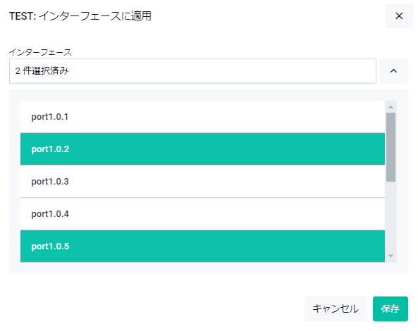 | X件選択済み | インターフェースのリストから選択済みのインターフェース数が表示されます。 |