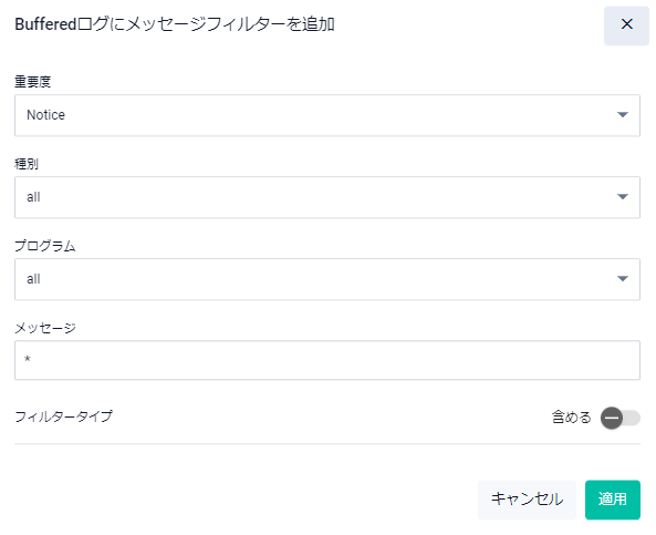 | フィルター | ローカルログやリモートログに対してメッセージフィルターの設定ができます |
