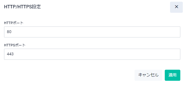 | 設定ボタン | HTTP/HTTPSポートの設定を変更するためのHTTP/HTTPS設定ダイアログが開きます |