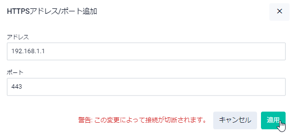 Note待ち受けアドレス/ポートの追加や削除を行うとWeb GUIの接続がいったん切断されます。