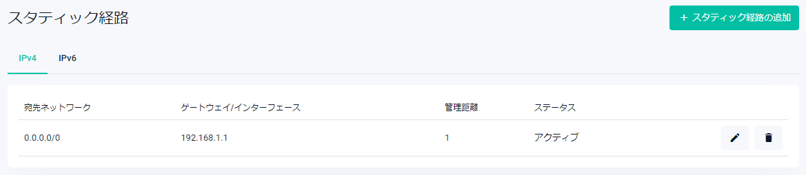 | 削除ボタン | スタティック経路を削除します。削除前には確認のダイアログが表示されます |