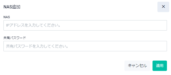 | 共有パスワード | NAS・RADIUSサーバー間の通信に使用する共有パスワードを入力してください |