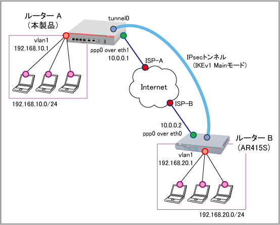 | WAN側(ppp0)IPアドレス | 10.0.0.1/32 | 10.0.0.2/32 |