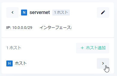 | (N) servernet Xホスト > | ゾーンに所属するネットワークの名前(例ではservername)と該当ネットワークに所属するホストの数(X)が表示されます。右向き矢印をクリックすると、該当ネットワークの情報に表示が切り替わります。 |