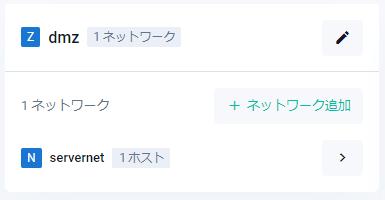 | < (N) servernet(例) | ネットワークの名前が表示されます。左向き矢印をクリックすると、該当ネットワークが所属しているゾーンの情報に表示が切り替わります |