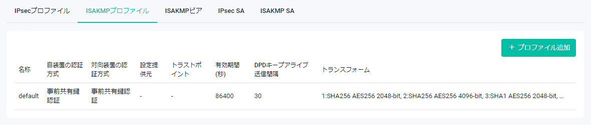| 名称 | ISAKMPプロファイル名が表示されます |