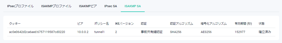 | ピア | ISAKMPピア(ISAKMP SA対向装置)が表示されます |