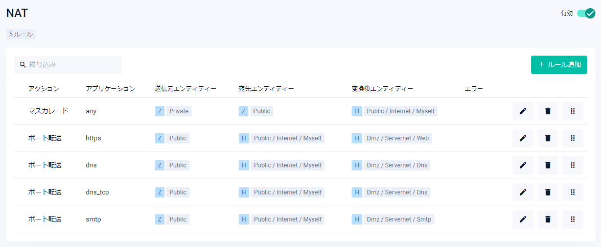 | ネットワーク追加ボタン | 該当ゾーンにネットワークを追加するためのネットワーク追加ダイアログが開きます |