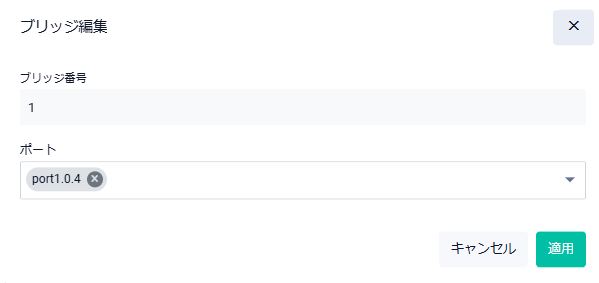 | IPアドレス | 対象インターフェースに設定するIPv4アドレスを「192.168.101.1/24」の形式で入力してください。空欄(未定義)の状態で「適用」ボタンを押した場合は該当インターフェースのIPv4アドレスが削除されます |