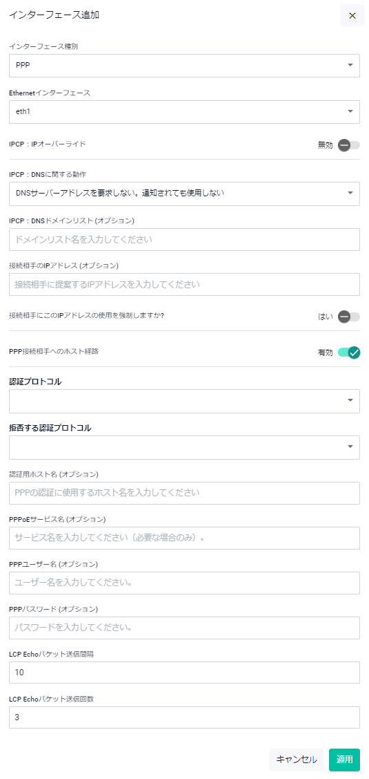 | LCP Echoパケット送信間隔 | LCP Echoパケットの送信間隔(秒)を入力してください |