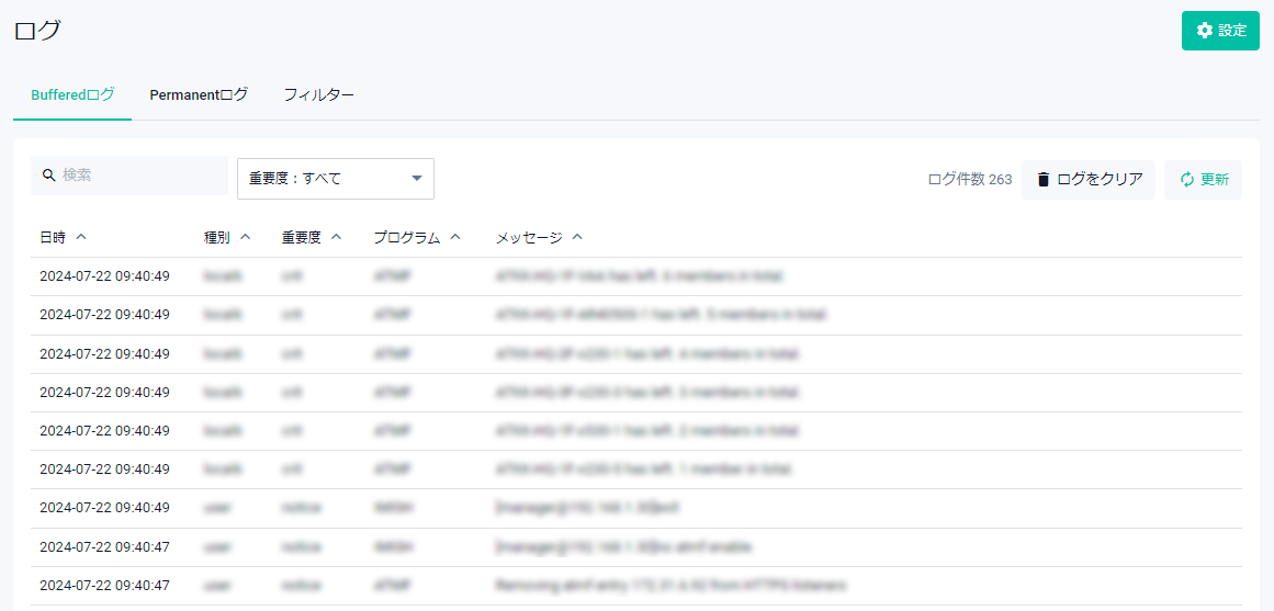 | フィルター | ローカルログやリモートログに対してメッセージフィルターの設定ができます |