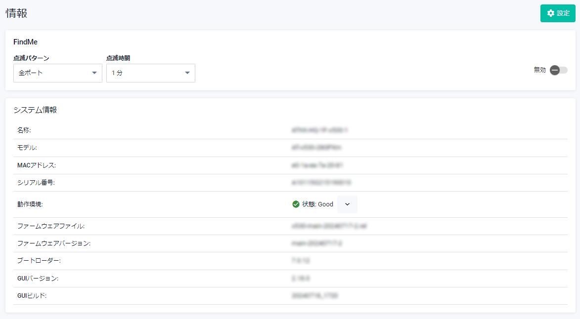 | GUIバージョン | 現在使用中のGUIバージョンが表示されます |