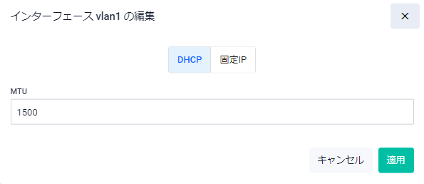 | MTU | 対象インターフェースから送信可能なパケットの最大サイズ(MTU)を入力してください |