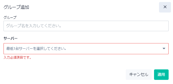 | 適用ボタン | グループを追加して一覧画面に戻ります |