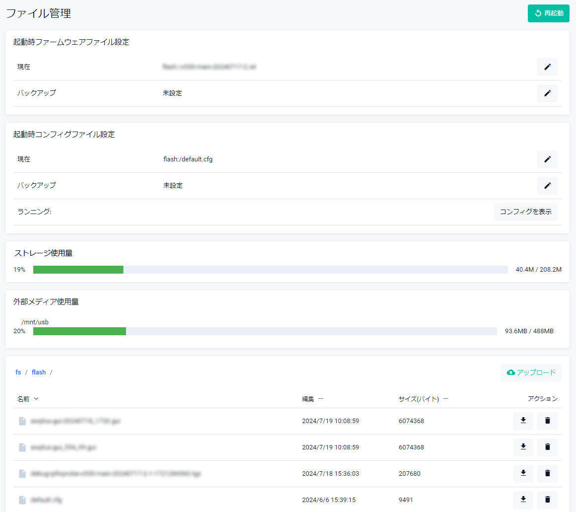 | ファームウェアファイル | 現在使用中のファームウェアイメージファイルが表示されます |