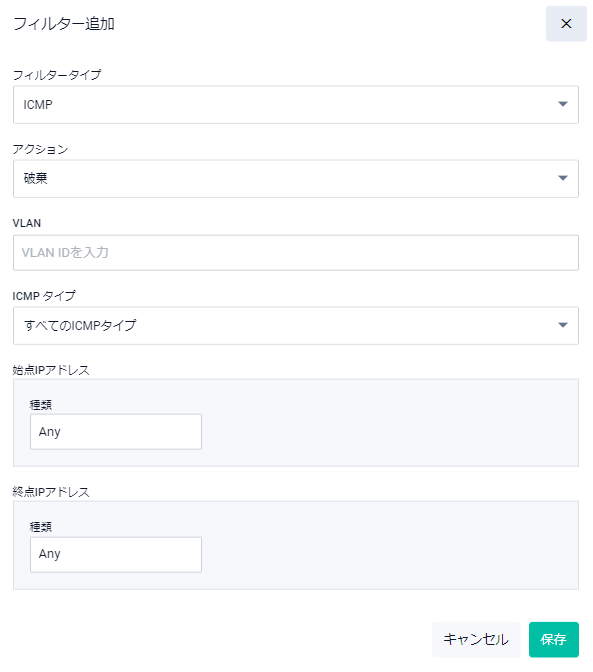 | ICMPタイプ | ICMPメッセージタイプを指定します |