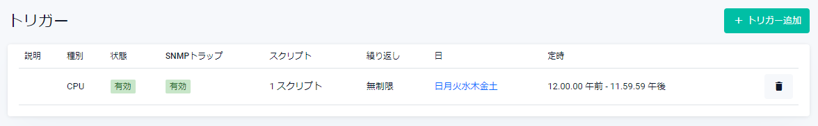 | 説明 | トリガー追加時に指定した説明文が表示されます |