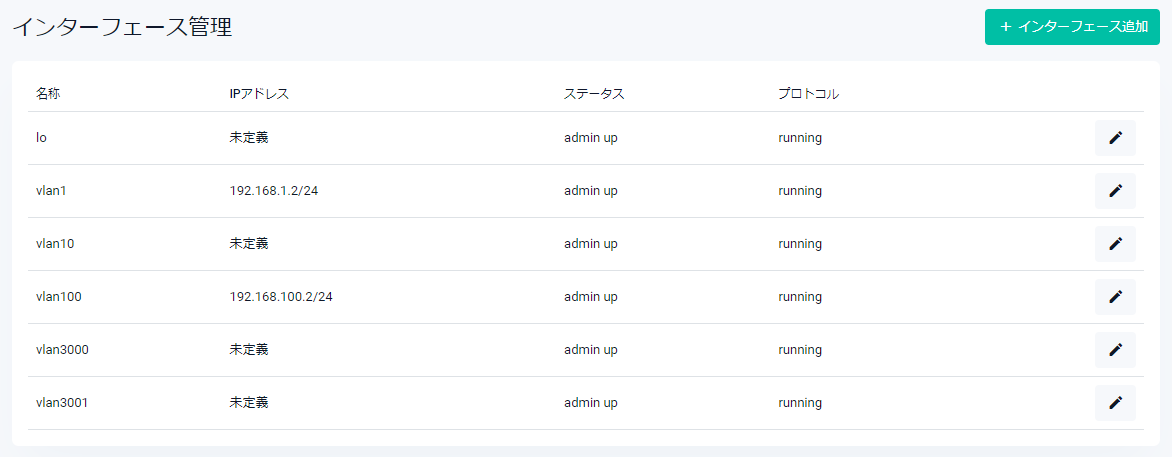| 適用ボタン | インターフェースを追加して一覧画面に戻ります |