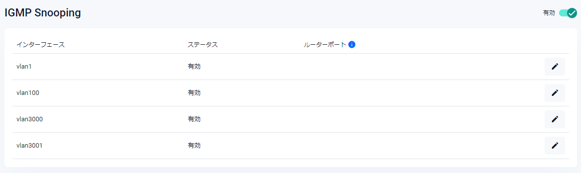 | ステータス | IGMP Snoopingの有効・無効が表示されます |