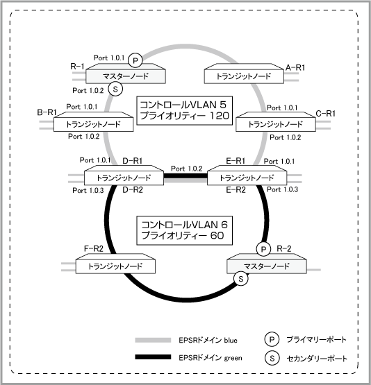Note本製品は、EPSRにG.8032のサブリングを組み合わせた構成をサポートしています。詳しくは、G.8032とEPSRを組み合わせた構成をご覧ください。