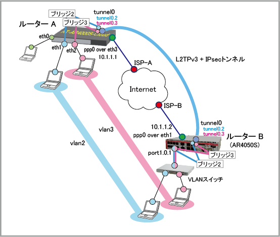 | WAN側(ppp0)IPアドレス | 10.1.1.1/32 | 10.1.1.2/32 |
