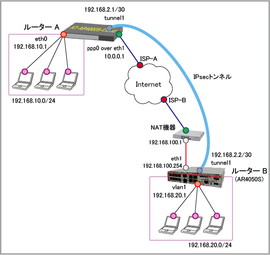 | LAN側(eth0)IPアドレス | 192.168.10.1/24 | 192.168.20.1/24 |