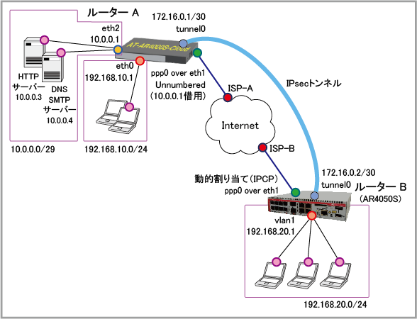 | LAN側(eth0/vlan1)IPアドレス | 192.168.10.1/24 | 192.168.20.1/24 |