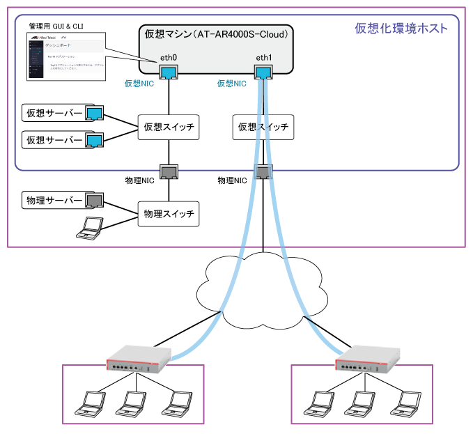 NoteAWS編にしたがってユーザーネットワークとの接続設定が行われていることを前提に、ユーザーネットワークの管理PCから本製品にアクセスするものと仮定しています。