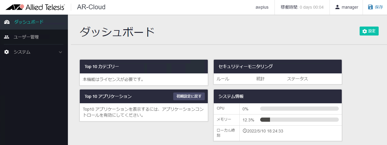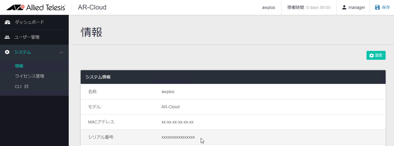 NoteAT-AR4000S-Cloudのシリアル番号は、AT-AR4000S-Cloudの仮想マシンを削除して作成しなおすと変更されます。シリアル番号が変更されるとライセンスの再発行が必要になりますので不用意に仮想マシンを削除しないようご注意ください。